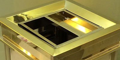 不銹鋼電梯口垃圾桶采用優(yōu)質(zhì)不銹鋼材料無(wú)縫焊接成型,投口模具沖壓成型,邊角精細(xì)打磨拋光圓滑不割手,高檔大氣。