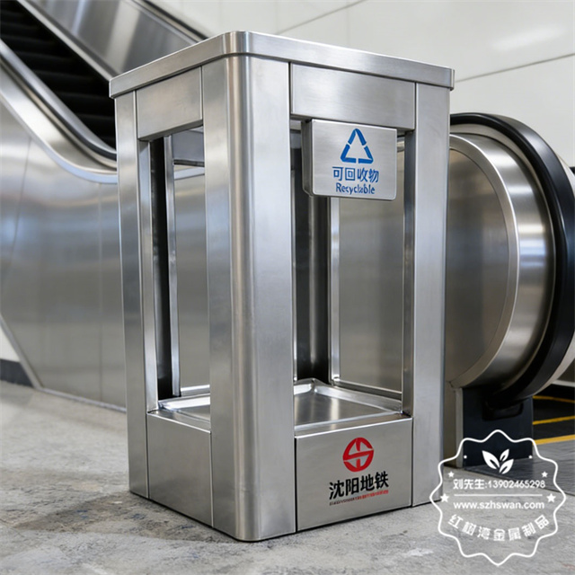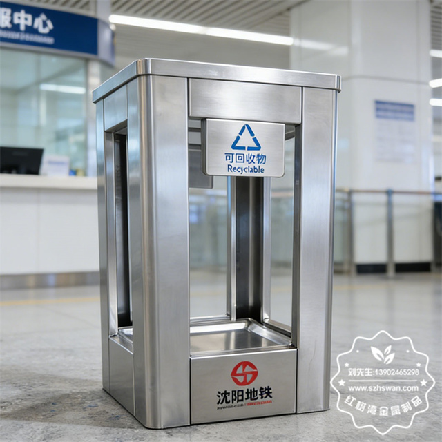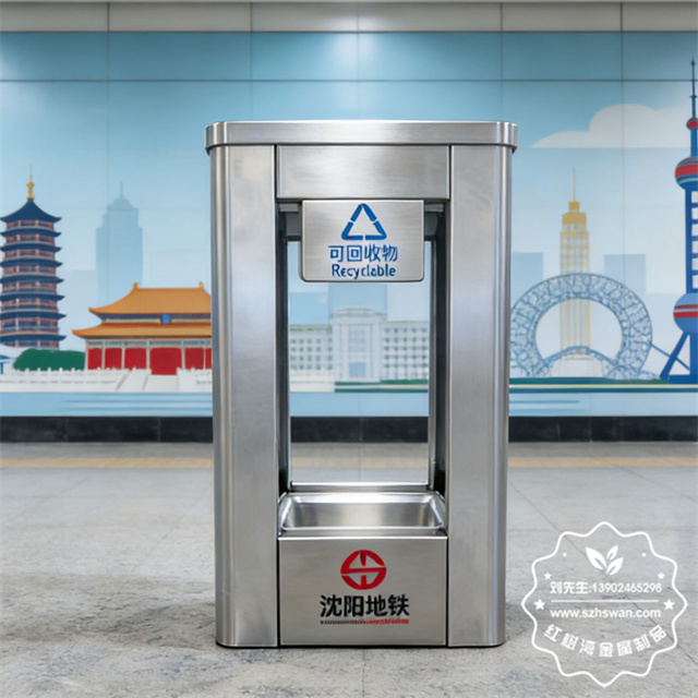 產品材質:沈陽地鐵站透明防爆不銹鋼垃圾桶采用201#,202#,304#優質不銹鋼材料模壓成型,堅固耐用;內外表面光潔,減少垃圾殘留,易于清潔;配置鍍鋅板內桶,便于垃圾清倒;