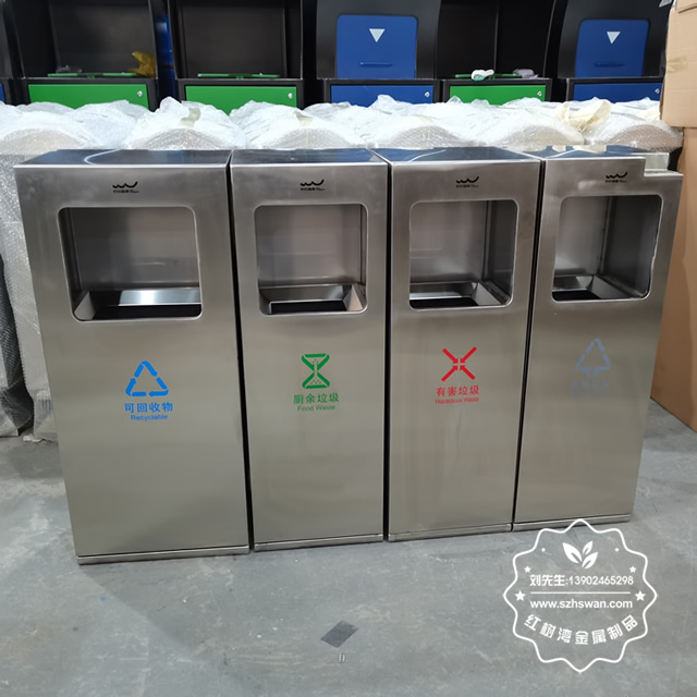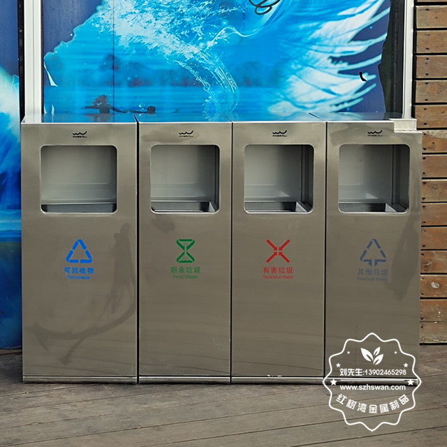 戶外廣場組合式不銹鋼分類垃圾桶采用優(yōu)質(zhì)201不銹鋼無縫焊接成型,投口模具沖壓成型,邊角精細(xì)打磨拋光圓滑不割手,高檔大氣。