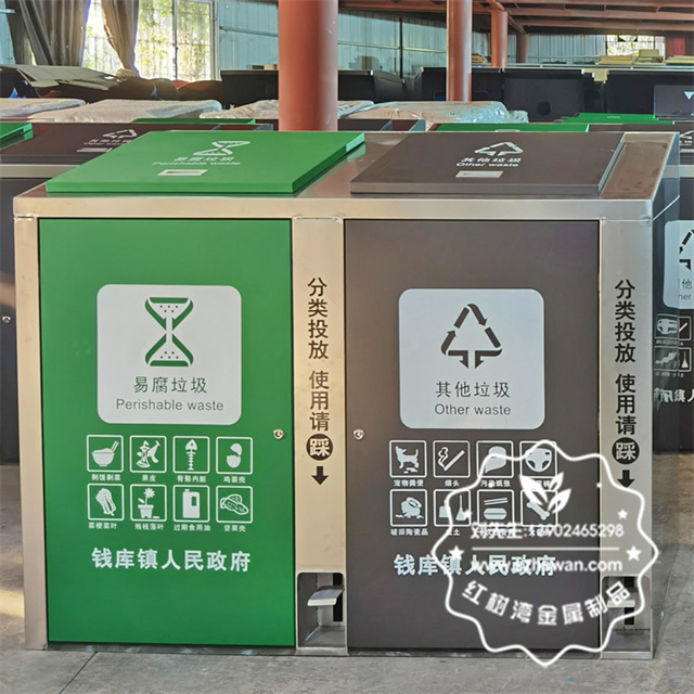 戶外大號腳踏式不銹鋼分類垃圾箱采用優(yōu)質(zhì)201不銹鋼無縫焊接成型,投口模具沖壓成型,邊角精細打磨拋光圓滑不割手,高檔大氣。