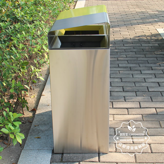 戶外市政街道不銹鋼垃圾桶采用優質201不銹鋼無縫焊接成型,投口模具沖壓成型,邊角精細打磨拋光圓滑不割手,高檔大氣。