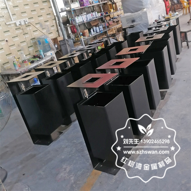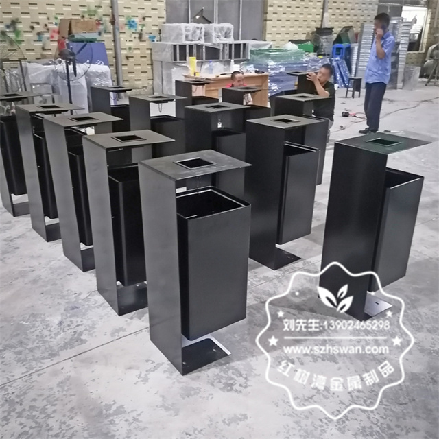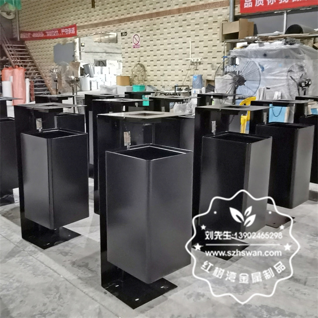 戶外噴塑黑色不銹鋼垃圾桶單筒采用優質304不銹鋼無縫焊接成型,投口模具沖壓成型,邊角精細打磨拋光圓滑不割手,高檔大氣。