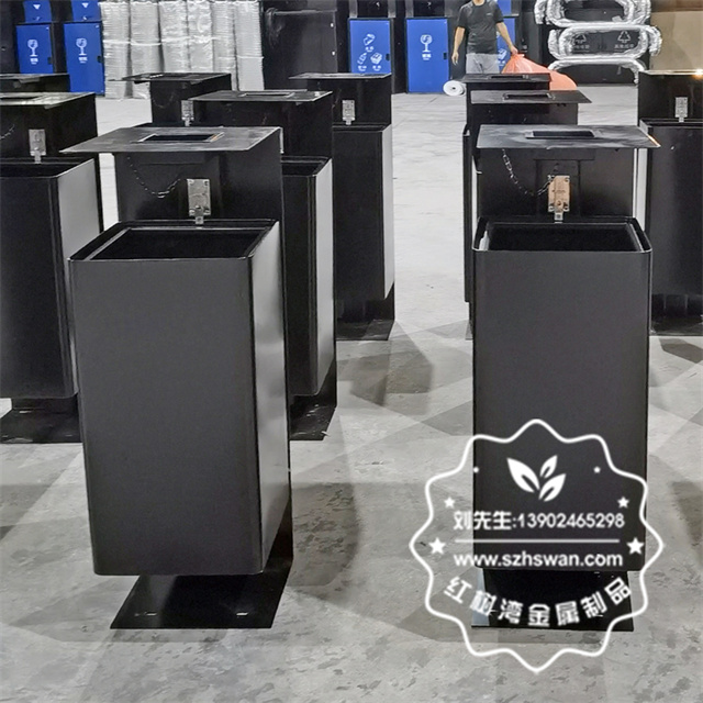 產品材質:戶外噴塑黑色不銹鋼垃圾桶單筒采用201#,202#,304#優質不銹鋼材料模壓成型,堅固耐用;內外表面光潔,減少垃圾殘留,易于清潔;配置鍍鋅板內桶,便于垃圾清倒;