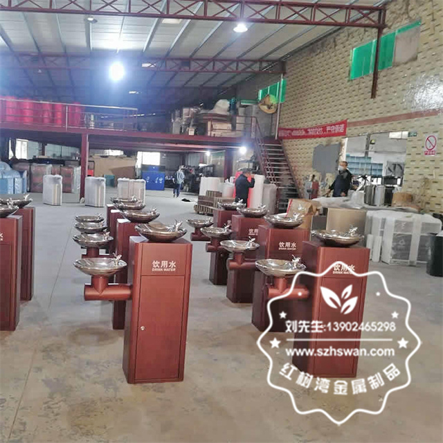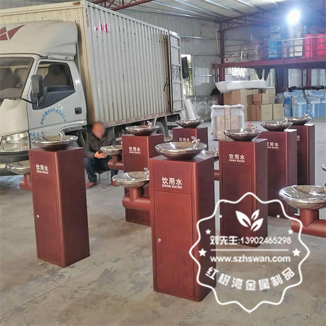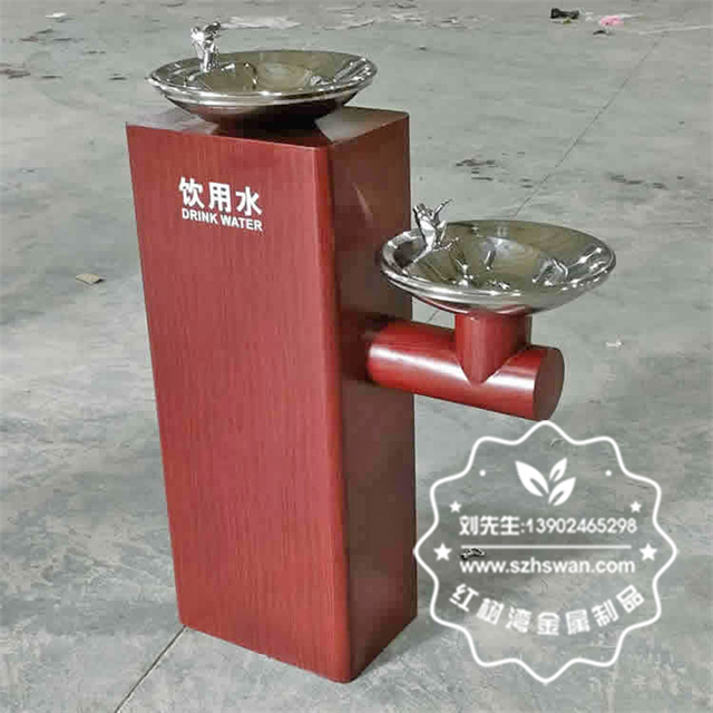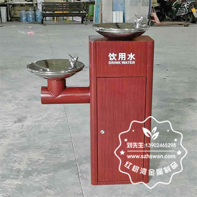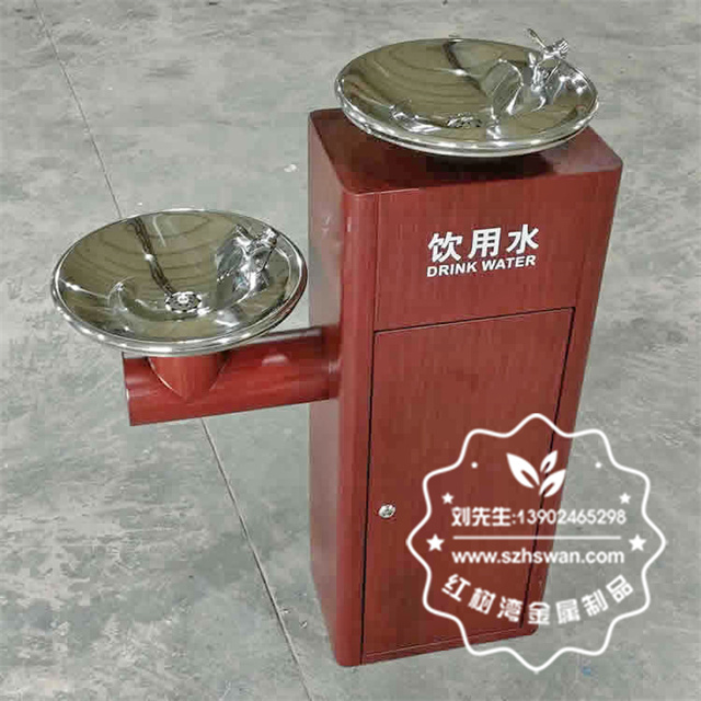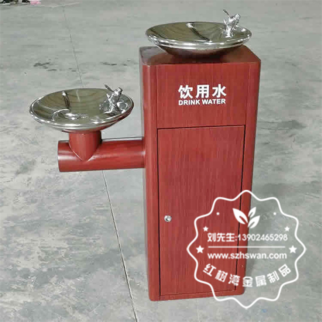 產(chǎn)品材質(zhì):戶外景區(qū)公共轉(zhuǎn)木紋胡桃色不銹鋼飲水機(jī)采用了304不銹鋼板制作而成,雙盆方形底座設(shè)計(jì),金屬表面胡桃色轉(zhuǎn)木紋,雙盆不銹鋼本色亮光,箱體油墨絲印飲水機(jī)中英文文字,可以使用三角鑰匙開門,內(nèi)置帶過(guò)濾系統(tǒng)。
