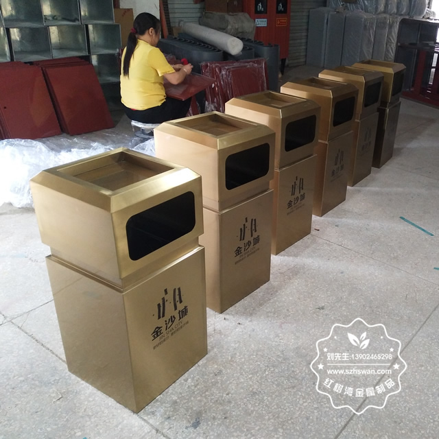 戶外電鍍土豪金方形不銹鋼果皮箱