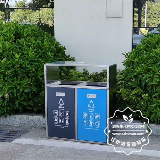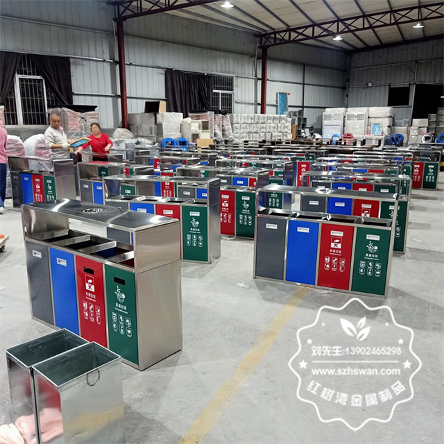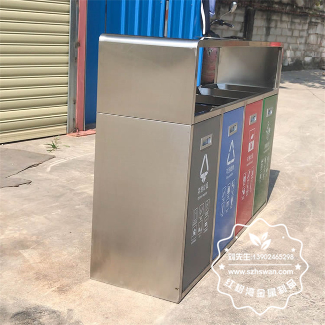 產品材質:四色分類果皮不銹鋼垃圾箱采用201#,202#,304#優質不銹鋼材料模壓成型,堅固耐用;內外表面光潔,減少垃圾殘留,易于清潔;配置鍍鋅板內桶,便于垃圾清倒;