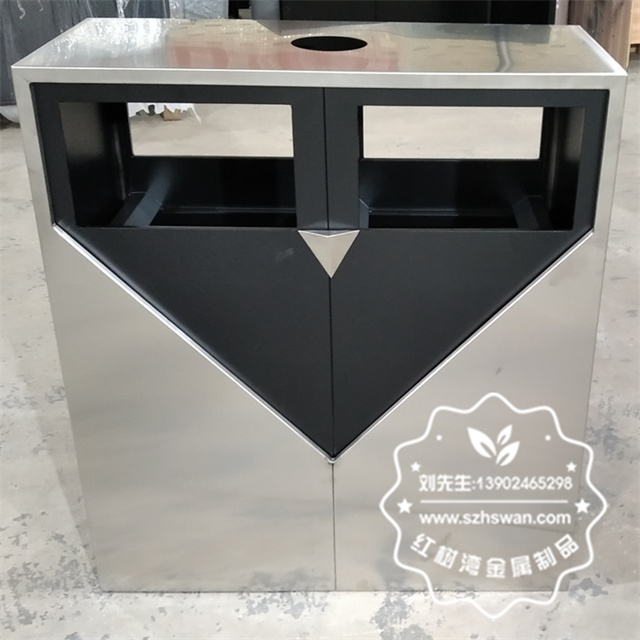 戶外小區噴塑雙層不銹鋼分類垃圾桶采用優質304不銹鋼無縫焊接成型,投口模具沖壓成型,邊角精細打磨拋光圓滑不割手,高檔大氣。