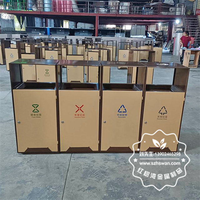 產品材質:戶外公園景區組合式分類不銹鋼垃圾桶采用201#,202#,304#優質不銹鋼材料模壓成型,堅固耐用;內外表面光潔,減少垃圾殘留,易于清潔;配置鍍鋅板內桶,便于垃圾清倒;
