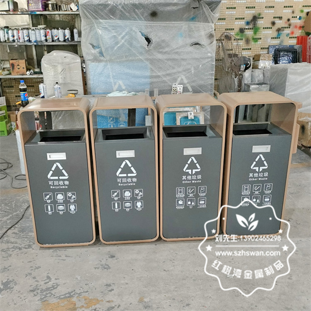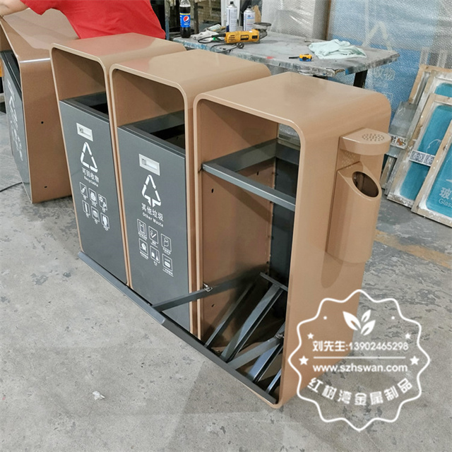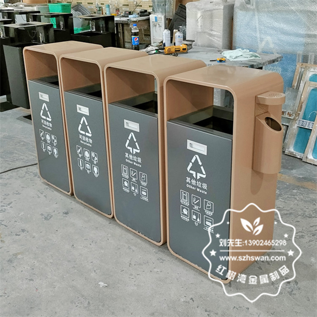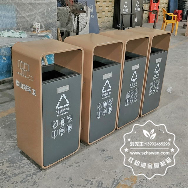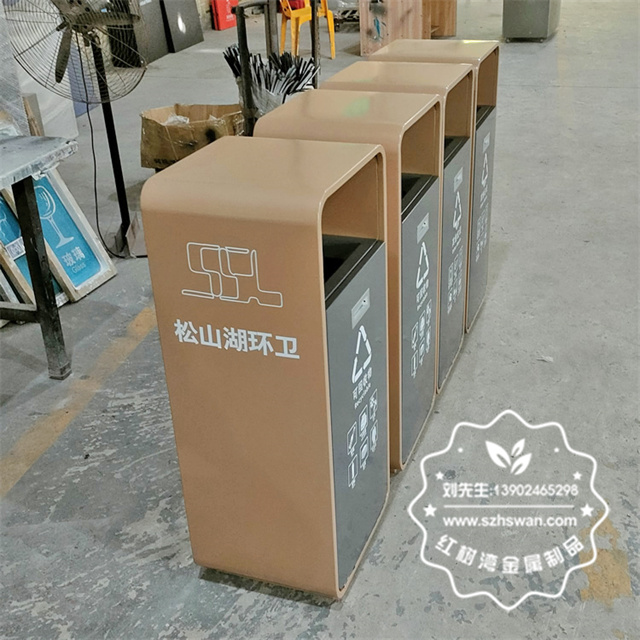 廣東東莞松山湖電鍍不銹鋼分類垃圾桶采用優(yōu)質(zhì)304不銹鋼無縫焊接成型,投口模具沖壓成型,邊角精細(xì)打磨拋光圓滑不割手,高檔大氣。