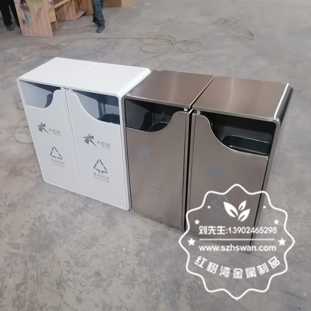產品材質:戶外組合式不銹鋼分類垃圾桶采用201#,202#,304#優質不銹鋼材料模壓成型,堅固耐用;內外表面光潔,減少垃圾殘留,易于清潔;配置鍍鋅板內桶,便于垃圾清倒;
