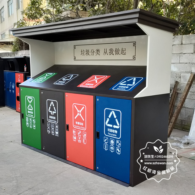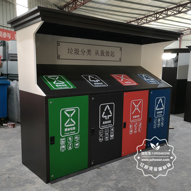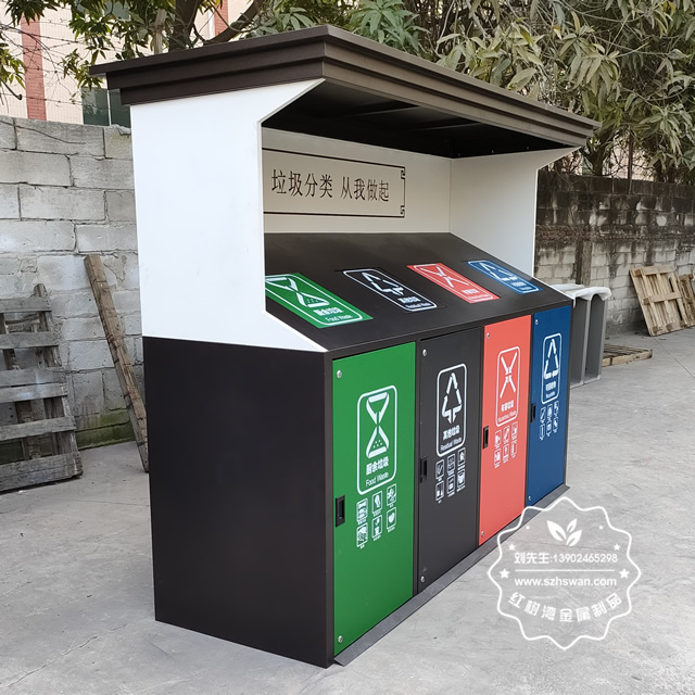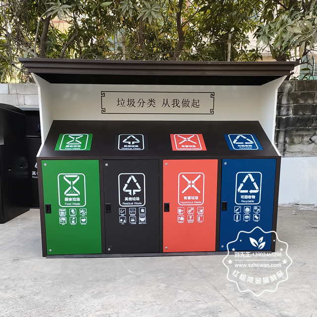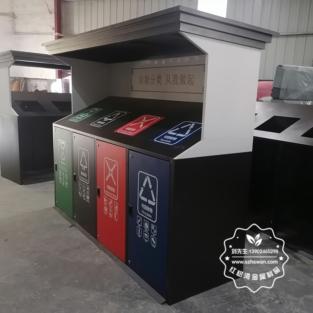 城市街道大型鍍鋅板分類垃圾桶