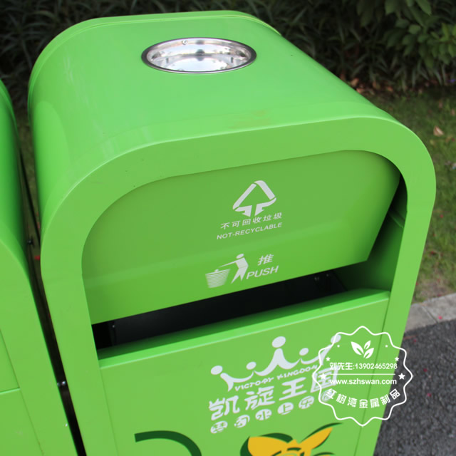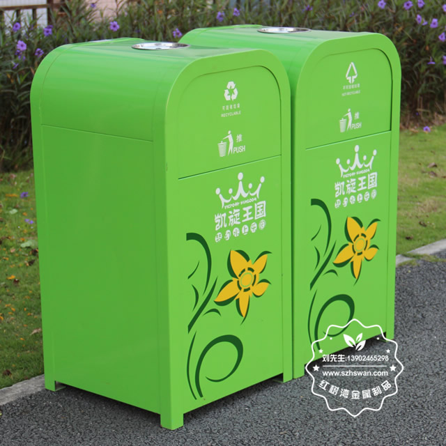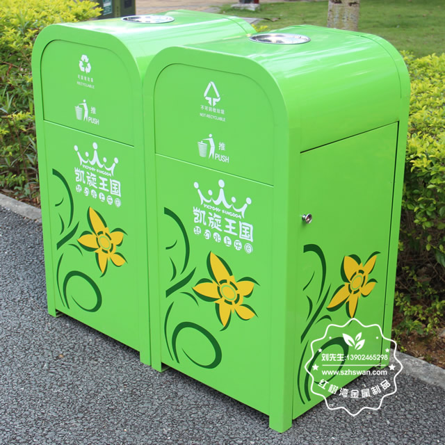 產(chǎn)品材質(zhì):戶外景區(qū)雙分類鋼制垃圾箱表面經(jīng)過除油、噴砂防銹處理后,再進(jìn)行酸洗磷化處理;表面清理后整體進(jìn)行靜電噴涂或烤漆處理,靜電噴涂是經(jīng)過流水線高溫固化爐固化后再出爐冷卻,漆面色澤耐久,防腐防銹;