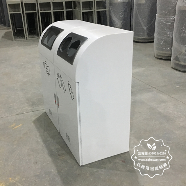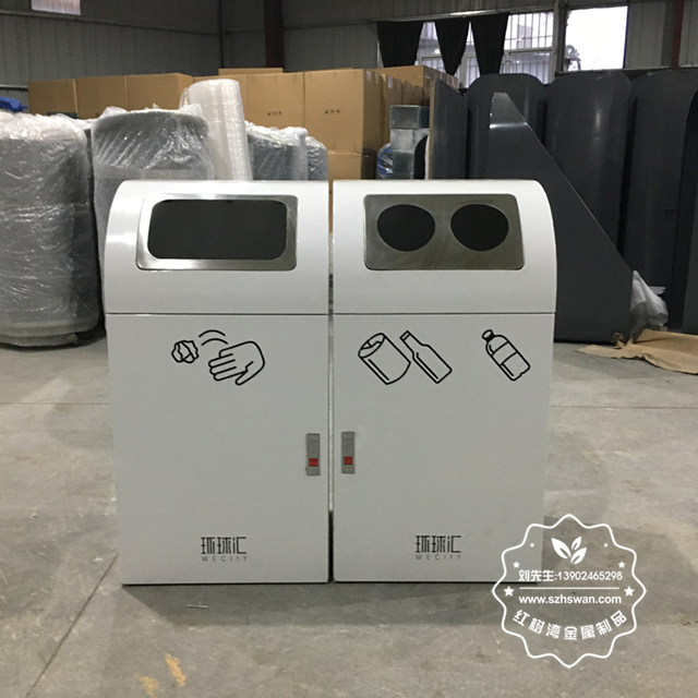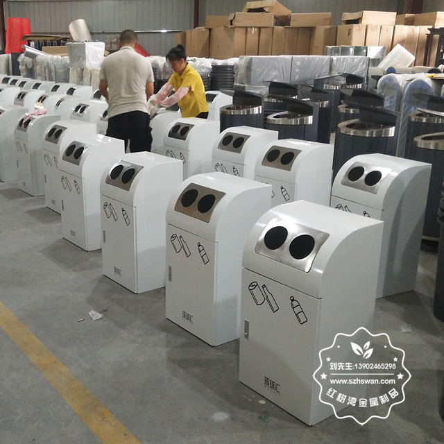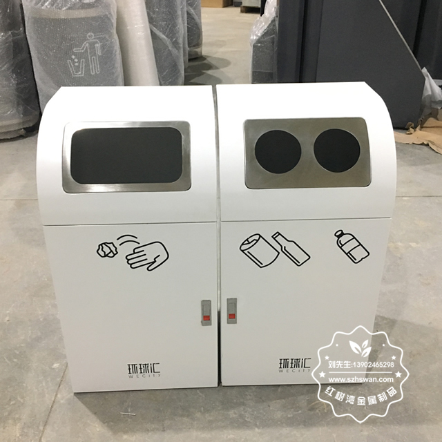 產品材質:室內組合式分類鋼制垃圾桶表面經過除油、噴砂防銹處理后,再進行酸洗磷化處理;表面清理后整體進行靜電噴涂或烤漆處理,靜電噴涂是經過流水線高溫固化爐固化后再出爐冷卻,漆面色澤耐久,防腐防銹;