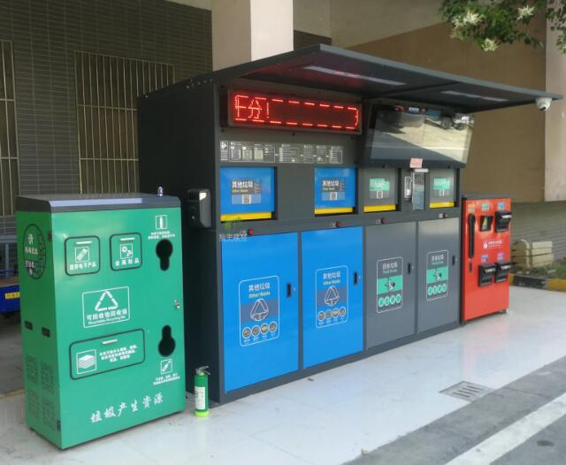 智能垃圾分類箱相較于傳統的垃圾箱具有更多的“智能化”??梢赃M行觸摸屏操作,并且垃圾箱還可以自動稱重以及電子語音播報等功能,每次居民投放垃圾都能產生個人積分,當積分累積到一定數值后,就可以進行兌換生活用品。