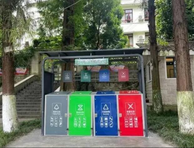 生活垃圾分類收集是城市生活垃圾處置的主流趨勢,也是現代城市文明進步的標志之一,有利于提升垃圾清運效率,便于再生資源的回收利用,減少環境污染,減少環衛工人常規保潔的壓力。垃圾分類亭,分為地基基礎設施、公益宣傳欄、立柱、頂棚等,亭內設置可回收、有害垃圾、廚房垃圾和其他垃圾等垃圾桶,垃圾桶及宣傳欄配有垃圾分類的宣傳標語,廣大群眾可以根據垃圾桶的提示標語,將廢棄的生活垃圾投放到對應的垃圾桶中。