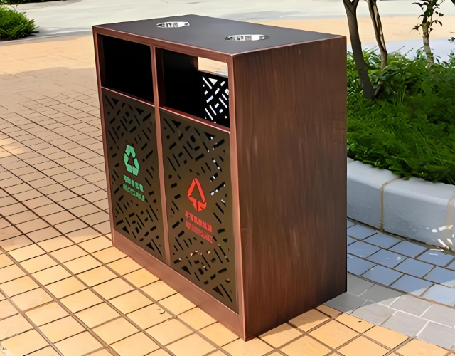 在城市公共空間的設計中,垃圾桶雖是小物件,卻是衡量城市管理水平和文明程度的重要細節。近年來,隨著環保理念的深化與垃圾分類的普及,兼具實用性與美觀性的戶外垃圾桶成為城市基礎設施升級的重點。其中,戶外鏤空電鍍兩連體不銹鋼垃圾桶憑借其創新的設計、耐用的材質與環保功能,逐漸成為公園、街道、商業區等場所的優選設施。本文將從設計理念、材料性能、功能優勢及應用場景等方面,解析這一產品的獨特價值。