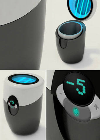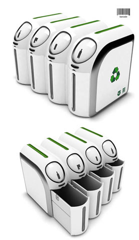 ? 全球創意垃圾桶設計二:條碼垃圾桶,眾所周知,垃圾是要分類回收的。每天為了思考自己的垃圾到底應該扔進哪個垃圾桶,不免繁瑣。有了這款垃圾桶,您就不用愁了。這款由Woo Seok Park設計的垃圾桶只需將外包裝上的回收條碼掃描一下就可以提示您的垃圾到底應該丟進哪個桶里。