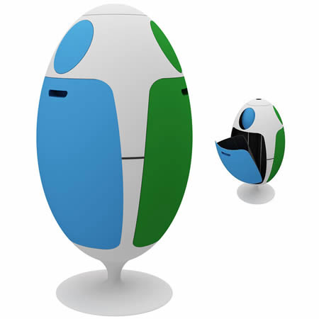 ? 全球創意垃圾桶設計六:雞蛋垃圾桶,如果你嫌別的垃圾分類方法太麻煩,這款垃圾桶是個很好的選擇。垃圾桶名為Ovetto,意大利文的意思是小雞蛋的意思。設計師Gianluca Soldi用三種不同色將垃圾桶內部空間隔為三大部分,只需要將垃圾對應投對顏色即可。