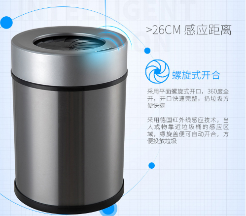 感應垃圾桶與傳統垃圾桶有著很大的區別,傳統垃圾桶就是一個容納垃圾的容器,而感應垃圾桶則是應用了相關的科學技術,使得垃圾桶變得更加智能化與人性化,使用起來更加方便,甚至一個高級體面智能的時尚垃圾桶還體現了主人翁的品位與追求。總的來說感應垃圾桶具有性能穩定、使用壽命長、使用方便等特點,并且非常衛生環保、節能低耗。如今感應垃圾桶垃圾桶的蓋子可以根據感應器來開或者關,不需要往常的手動或者腳踩,造型新穎,設計感非常強烈,為家居裝修增色不少。