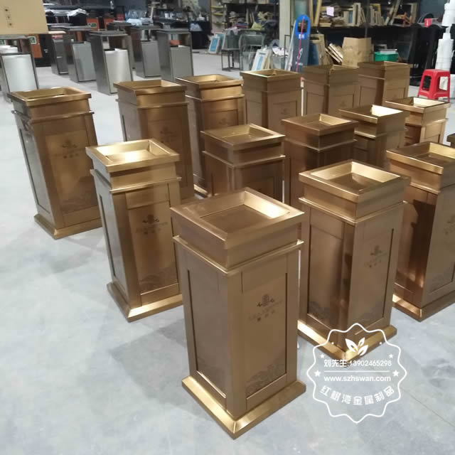 電梯口垃圾桶就是裝放垃圾的箱子,也叫垃圾箱、果皮箱、煙灰桶。本廠提供:不銹鋼垃圾桶(垃圾箱),不銹鋼煙灰桶、不銹鋼果皮箱(果皮桶),酒店大堂垃圾桶,賓館煙灰桶,樓梯口果皮箱,戶外垃圾桶,戶外分類(lèi)環(huán)保果皮箱,電梯口垃圾桶,高檔垃圾桶(果皮箱、煙灰桶),鈦金垃圾桶/煙灰桶/果皮箱等。垃圾桶就使用場(chǎng)合可分為公共垃圾桶和家庭垃圾桶。就盛放垃圾形式可分為獨(dú)立垃圾桶和分類(lèi)垃圾桶。就加工材料可分為塑料垃圾桶、不銹鋼垃圾桶、陶瓷垃圾桶、木質(zhì)垃圾桶、水泥垃圾桶和紙漿垃圾桶等等。就開(kāi)啟方式有敞口式、揭蓋式、踩踏開(kāi)蓋、感應(yīng)式(紅外線)等。垃圾桶是社會(huì)文化的一種折射。