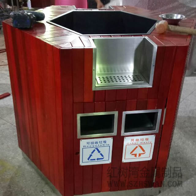 常用戶外分類垃圾桶種類:戶外不銹鋼分類垃圾桶、戶外鋼制分類垃圾桶、戶外鋼木分類垃圾桶、戶外玻璃鋼分類垃圾桶、戶外塑料分類垃圾桶等等。  垃圾桶又名廢物箱或垃圾箱,就是裝放垃圾的地方。垃圾桶多數以金屬或塑膠制,用時放入塑料袋,當垃圾一多便可扎起袋丟掉。多數垃圾桶都有蓋以防垃圾的異味四散,有些垃圾桶可以以腳踏開啟。垃圾桶是人們生活中“藏污納垢”的容器,也是社會文化的一種折射。家居的垃圾桶多數放于廚房,以便放置廚余。有些家庭會在主要房間都各置一個。有些游樂場的垃圾桶會特別設計成可愛的人物。