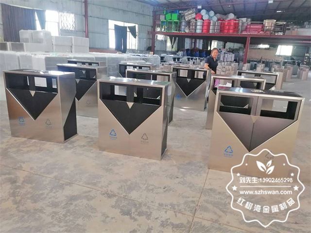 雙體同心中英街上的不銹鋼垃圾桶容器