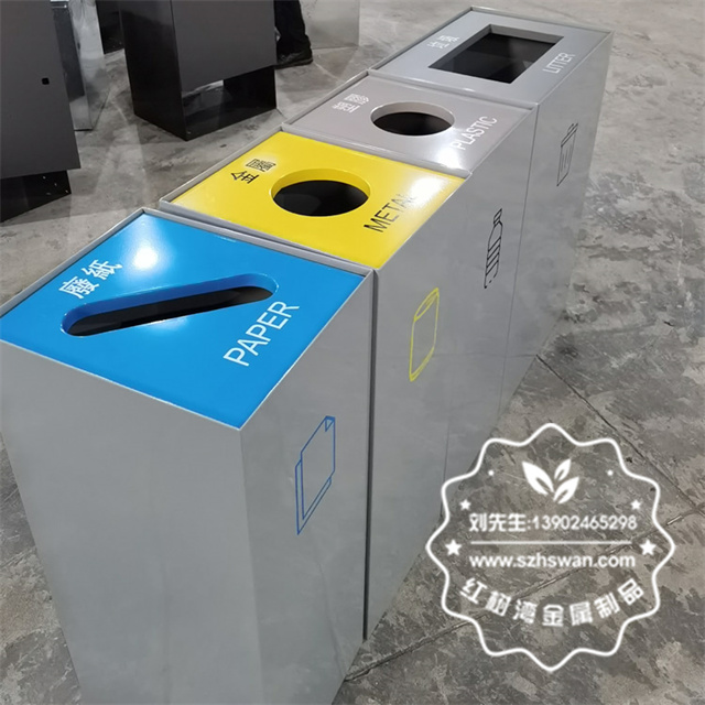 產(chǎn)品材質(zhì):室內(nèi)商用4分類不銹鋼垃圾桶采用201#,202#,304#優(yōu)質(zhì)不銹鋼材料模壓成型,堅(jiān)固耐用;內(nèi)外表面光潔,減少垃圾殘留,易于清潔;配置鍍鋅板內(nèi)桶,便于垃圾清倒;