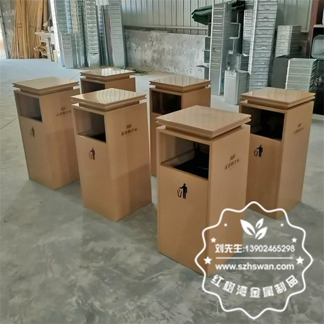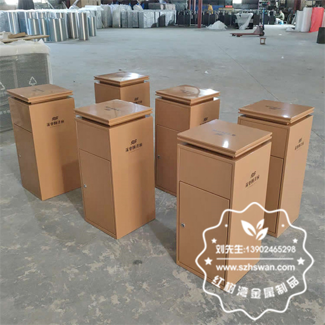 產品材質:物業小區電梯口噴塑不銹鋼果皮箱采用201#,202#,304#優質不銹鋼材料模壓成型,堅固耐用;內外表面光潔,減少垃圾殘留,易于清潔;配置鍍鋅板內桶,便于垃圾清倒;