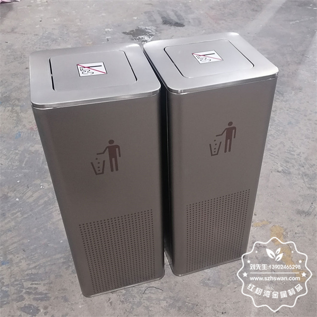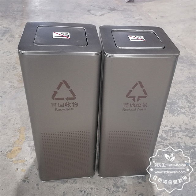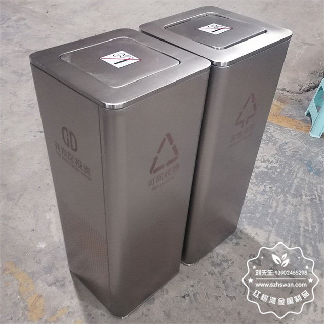 產品材質:廣州大學室內方形不銹鋼分類垃圾桶采用201#,202#,304#優質不銹鋼材料模壓成型,堅固耐用;內外表面光潔,減少垃圾殘留,易于清潔;配置鍍鋅板內桶,便于垃圾清倒;