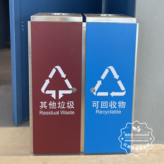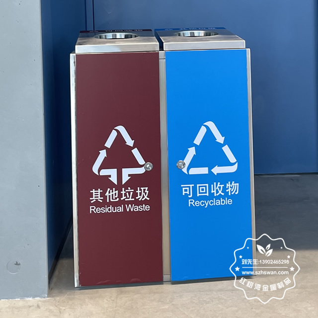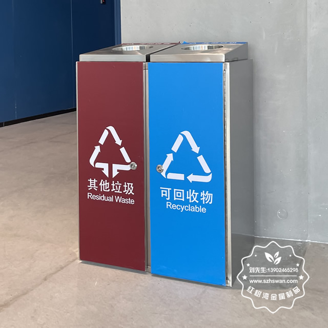 室內(nèi)地鐵站環(huán)保不銹鋼三分類垃圾桶
