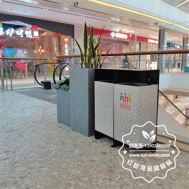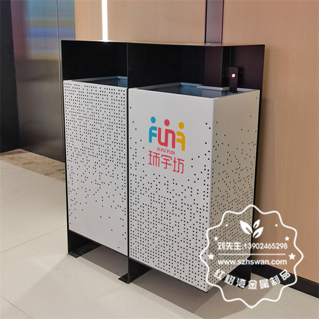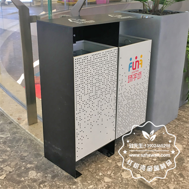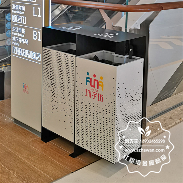 成都商場(chǎng)兩連體鏤空不銹鋼垃圾桶采用優(yōu)質(zhì)201不銹鋼無(wú)縫焊接成型,投口模具沖壓成型,邊角精細(xì)打磨拋光圓滑不割手,高檔大氣。
