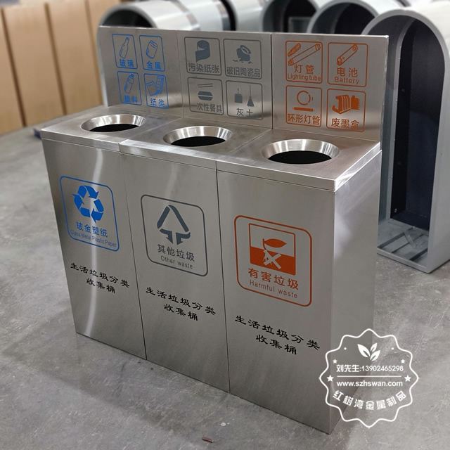 產品材質:室內方形直投口不銹鋼垃圾桶采用201#,202#,304#優質不銹鋼材料模壓成型,堅固耐用;內外表面光潔,減少垃圾殘留,易于清潔;配置鍍鋅板內桶,便于垃圾清倒;