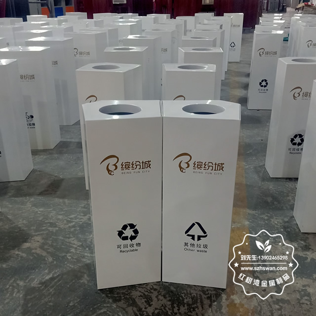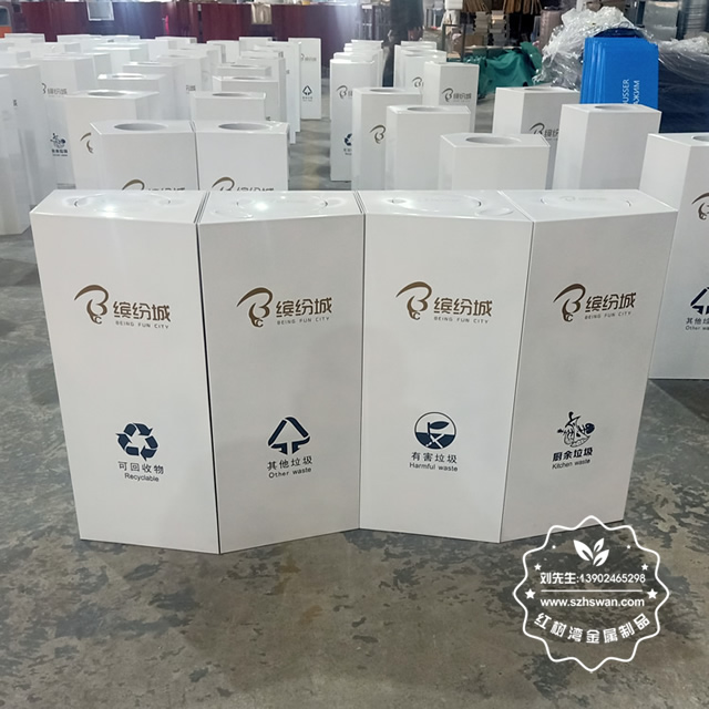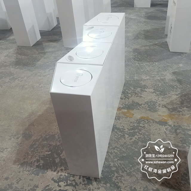 產品材質:商場室內四分類不銹鋼垃圾桶采用201#,202#,304#優質不銹鋼材料模壓成型,堅固耐用;內外表面光潔,減少垃圾殘留,易于清潔;配置鍍鋅板內桶,便于垃圾清倒;